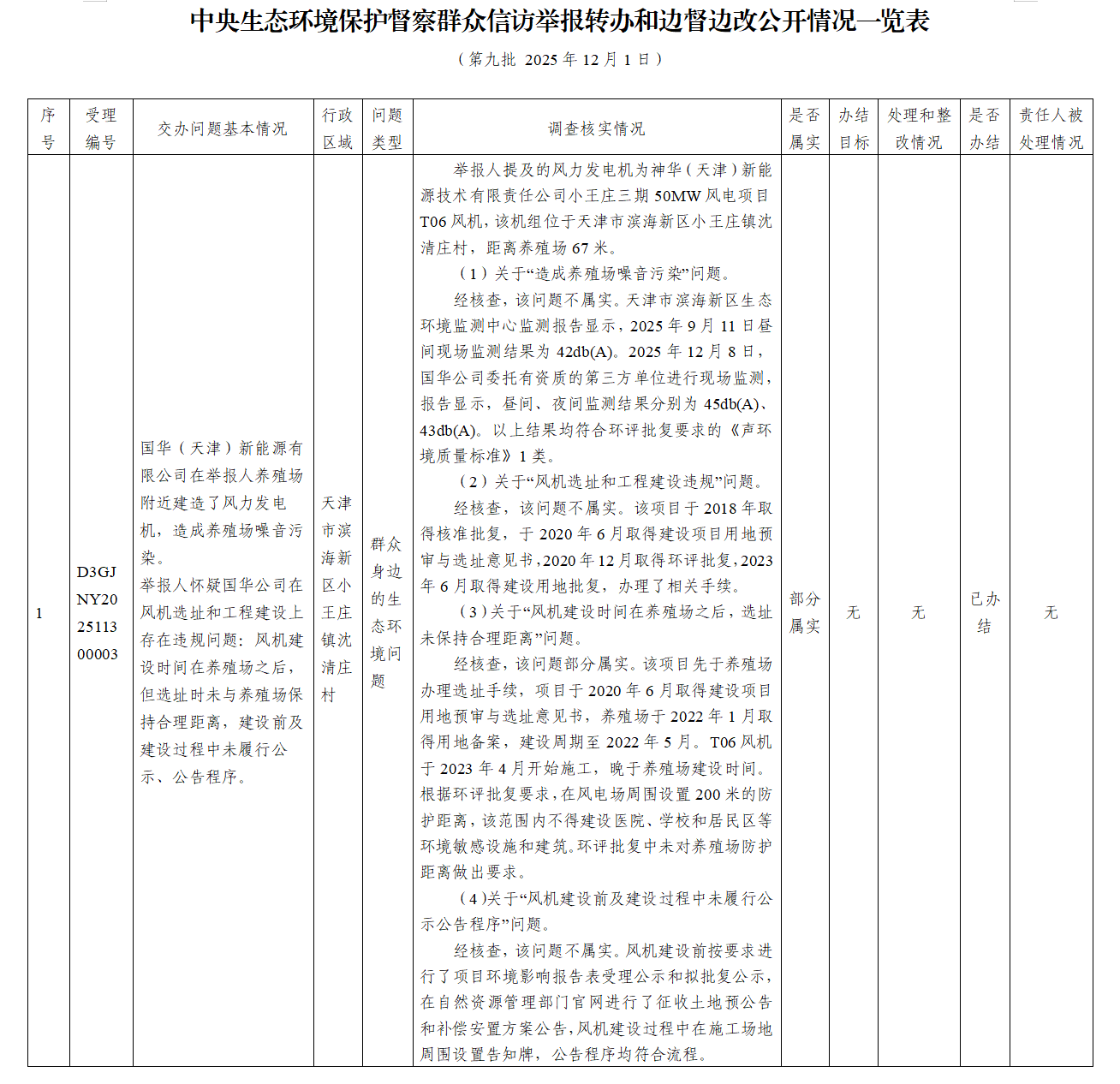 中央生態(tài)環(huán)境保護(hù)督察群眾信訪舉報轉(zhuǎn)辦和邊督邊改公開情況一覽表(第九批 2025年12月1日)