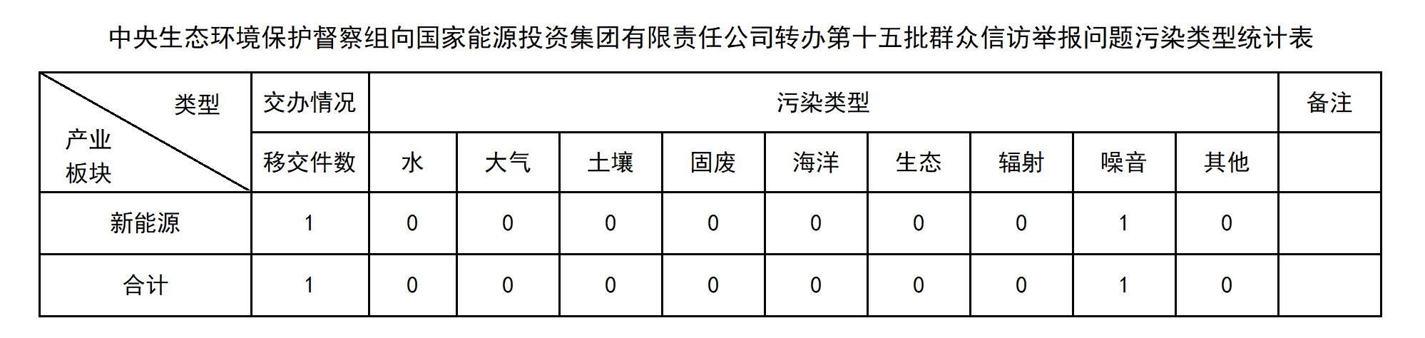 截至當(dāng)日,國(guó)家能源投資集團(tuán)有限責(zé)任公司已累計(jì)收到中央第五生態(tài)環(huán)境保護(hù)督察組交辦的信訪(fǎng)舉報(bào)件23件。涉及生態(tài)環(huán)境問(wèn)題32件(一件舉報(bào)可能涉及多種問(wèn)題類(lèi)型),其中水6件、大氣5件、土壤2件、固廢9件、生態(tài)7件、噪音3件。所有舉報(bào)件均已及時(shí)轉(zhuǎn)交相關(guān)企業(yè)處理。