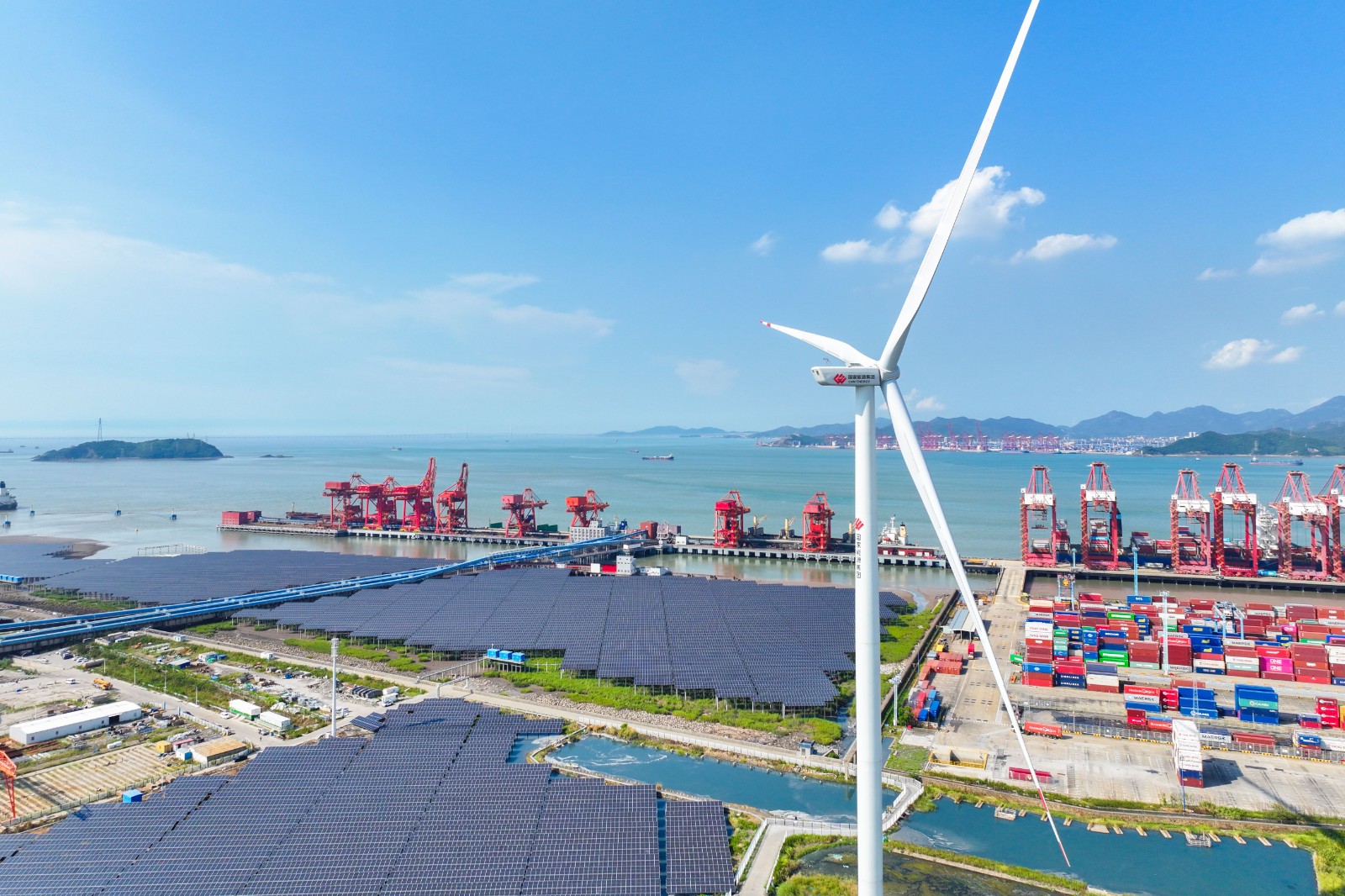 圖為北侖電廠的風電與光伏設備
