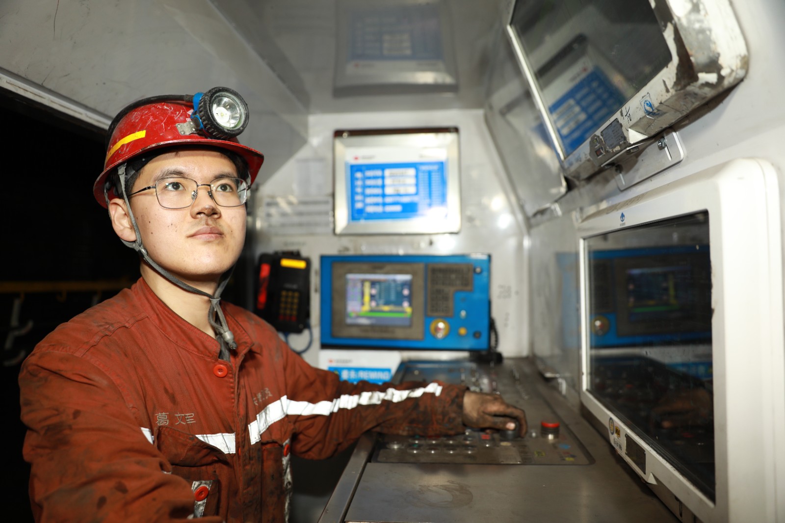 圖為員工在查看礦壓系統(tǒng)數(shù)據(jù)