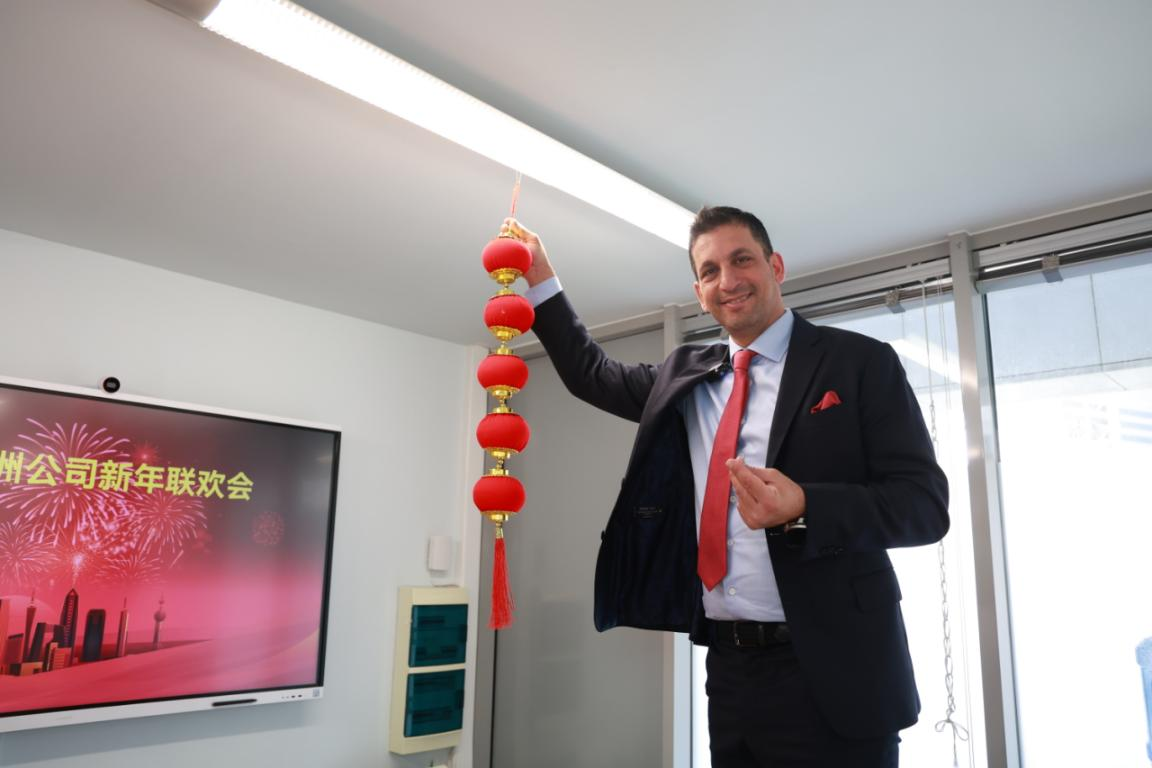 中國有句俗語“過了臘八就是年”,2月5日,中國農歷“立春”,國華投資歐洲新能源公司駐雅典辦公樓內年味漸濃。希臘籍員工約阿基姆和康斯坦丁諾斯正忙碌著張燈結彩,他們即將與中國同事在此歡度馬年新春,共敘友誼。